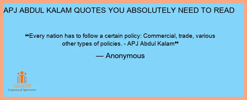 Every nation has to follow a certain policy: Commercial, trade, various other types of policies. - APJ Abdul Kalam