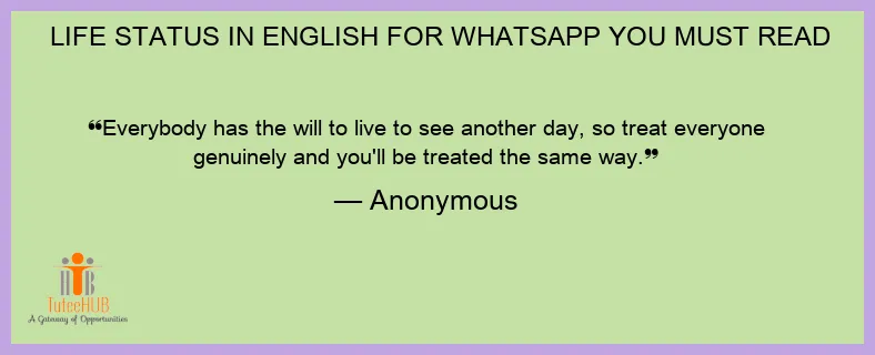Everybody has the will to live to see another day, so treat everyone genuinely and you'll be treated the same way.