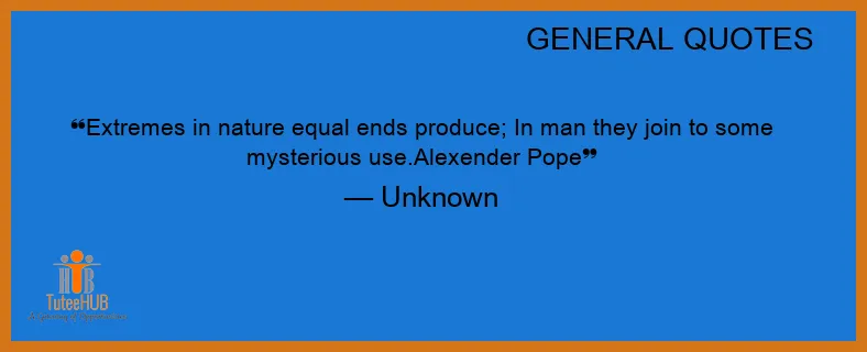 EXTREMES in nature EQUAL ENDS produce; In man they join to some mysterious use.Alexender POPE