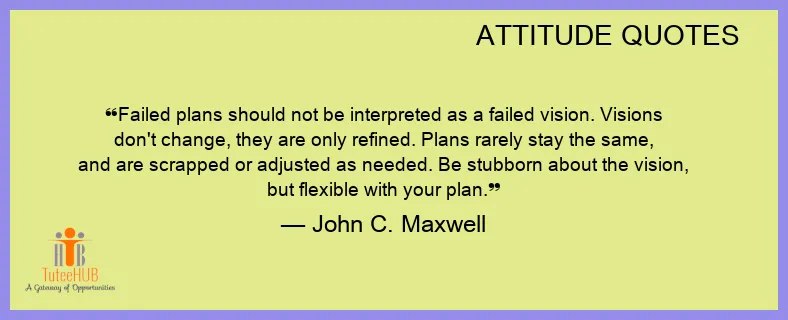 Failed PLANS should not be interpreted as a failed VISION. Visions don't CHANGE, they are only refined. Plans rarely stay the same, and are scrapped or adjusted as needed. Be STUBBORN about the vision, but FLEXIBLE with your plan.