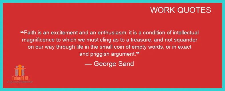 Faith is an excitement and an ENTHUSIASM: it is a condition of intellectual magnificence to which we must cling as to a TREASURE, and not squander on our way through LIFE in the small coin of empty WORDS, or in EXACT and priggish argument.