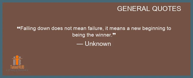 FALLING down does not MEAN FAILURE, it MEANS a new beginning to being the WINNER.