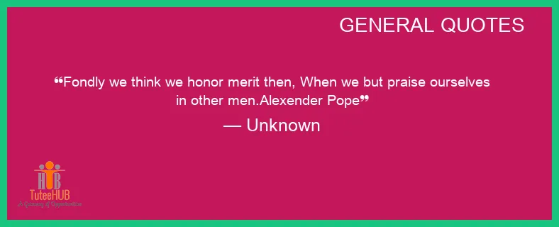Fondly we THINK we HONOR MERIT then, When we but PRAISE ourselves in other men.Alexender POPE