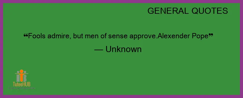 FOOLS ADMIRE, but MEN of SENSE approve.Alexender POPE