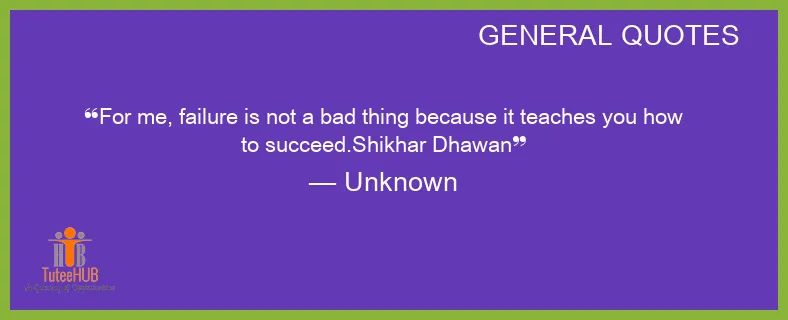 For me, FAILURE is not a BAD THING because it TEACHES you how to succeed.Shikhar Dhawan