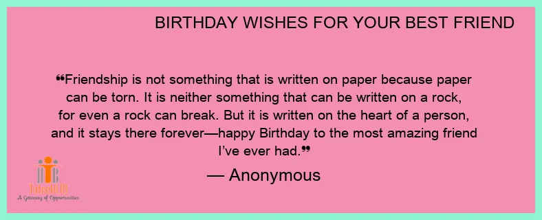 Friendship is not something that is written on paper because paper can be torn. It is neither something that can be written on a rock, for even a rock can break. But it is written on the heart of a person, and it stays there forever—happy Birthday to the most amazing friend I’ve ever had.