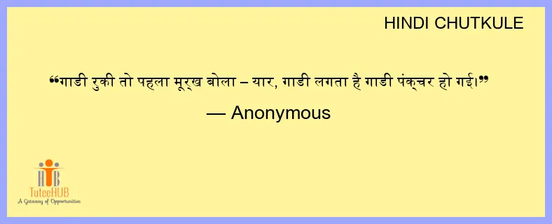 गाडी रुकी तो पहला मूर्ख बोला – यार, गाडी लगता है गाडी पंक्चर हो गई।