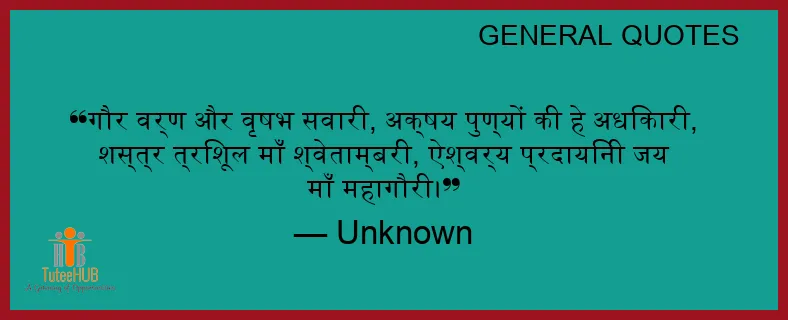गौर वर्ण और वृषभ सवारी, अक्षय पुण्यों की हे अधिकारी, शस्त्र त्रिशूल माँ श्वेताम्बरी, ऐश्वर्य प्रदायिनी जय माँ महागौरी।