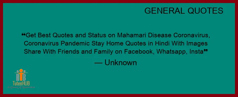 GET BEST QUOTES and Status on Mahamari Disease Coronavirus, Coronavirus Pandemic Stay Home Quotes in Hindi With Images Share With Friends and Family on FACEBOOK, Whatsapp, Insta