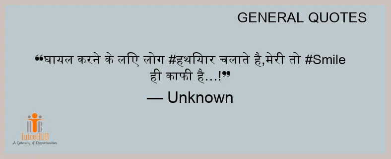 घायल करने के लिए लोग #हथियार चलाते है,मेरी तो #Smile ही काफी है…!