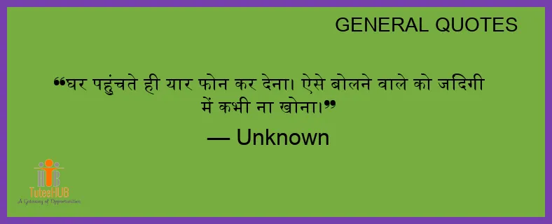 घर पहुंचते ही यार फोन कर देना। ऐसे बोलने वाले को जिंदगी में कभी ना खोना।