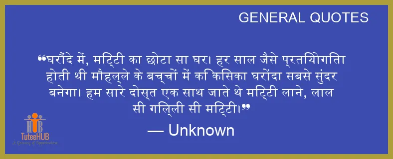 घरौंदे में, मिट्टी का छोटा सा घर। हर साल जैसे प्रतियोगिता होती थी मौहल्ले के बच्चों में कि किसका घरोंदा सबसे सुंदर बनेगा। हम सारे दोस्त एक साथ जाते थे मिट्टी लाने, लाल सी गिल्ली सी मिट्टी।