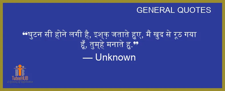 घुटन सी होने लगी है, इश्क़ जताते हुए, मैं खुद से रूठ गया हूँ, तुम्हे मनाते हु.
