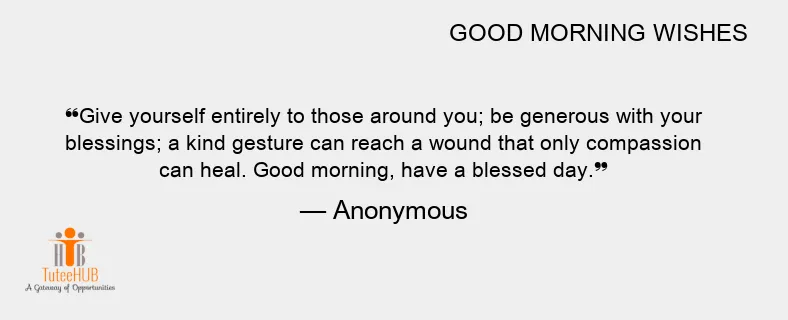 Give yourself entirely to those around you; be generous with your blessings; a kind gesture can reach a wound that only compassion can heal. Good morning, have a blessed day.