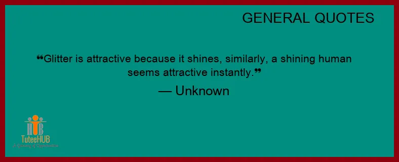 GLITTER is ATTRACTIVE because it shines, similarly, a SHINING HUMAN SEEMS attractive instantly.