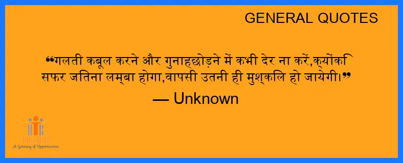 गलती कबूल करने और गुनाहछोड़ने में कभी देर ना करें,क्योंकि सफर जितना लम्बा होगा,वापसी उतनी ही मुश्किल हो जायेगी।