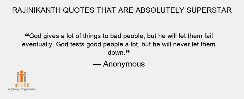 God gives a lot of things to bad people, but he will let them fail eventually. God tests good people a lot, but he will never let them down.