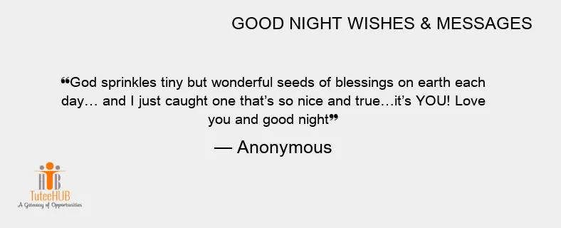 God sprinkles tiny but wonderful seeds of blessings on earth each day… and I just caught one that’s so nice and true…it’s YOU! Love you and good night