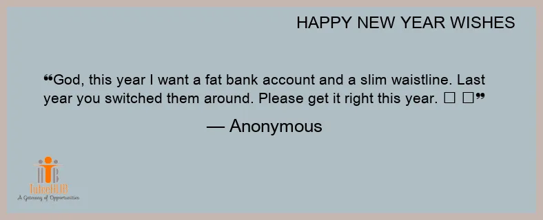 God, this year I want a fat bank account and a slim waistline. Last year you switched them around. Please get it right this year. πŸ˜€ πŸ˜€