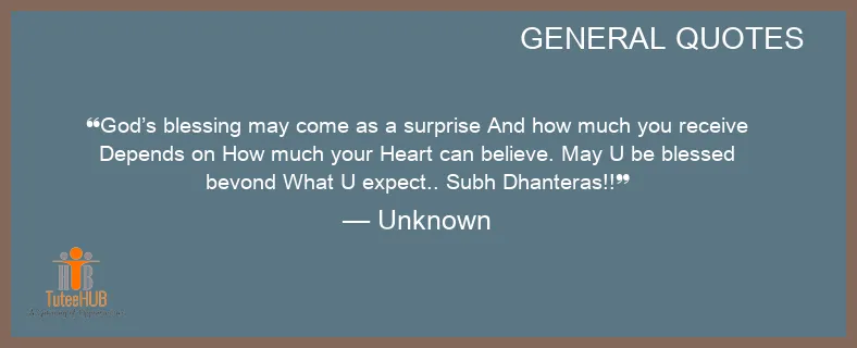 God’s blessing MAY come as a SURPRISE And how much you RECEIVE Depends on How much your Heart can believe. May U be blessed bevond What U expect.. SUBH Dhanteras!!