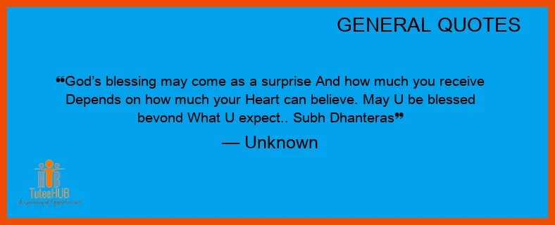 God’s blessing may COME as a surprise And how much you receive Depends on how much your Heart can believe. May U be BLESSED bevond What U expect.. SUBH Dhanteras