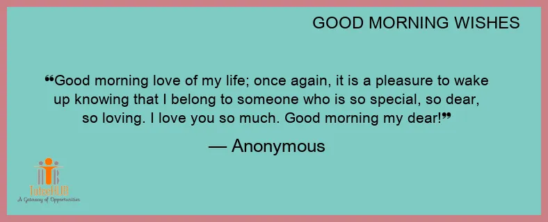 Good morning love of my life; once again, it is a pleasure to wake up knowing that I belong to someone who is so special, so dear, so loving. I love you so much. Good morning my dear!