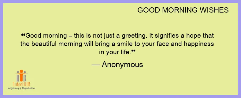 Good morning – this is not just a greeting. It signifies a hope that the beautiful morning will bring a smile to your face and happiness in your life.