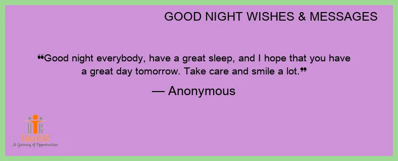 Good night everybody, have a great sleep, and I hope that you have a great day tomorrow. Take care and smile a lot.