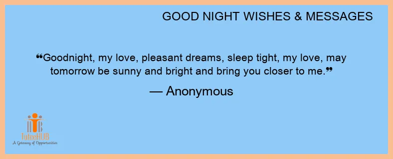 Goodnight, my love, pleasant dreams, sleep tight, my love, may tomorrow be sunny and bright and bring you closer to me.