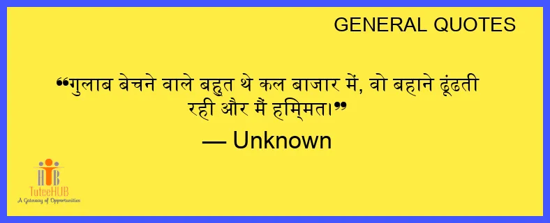 गुलाब बेचने वाले बहुत थे कल बाजार में, वो बहाने ढूंढती रही और मैं हिम्मत।