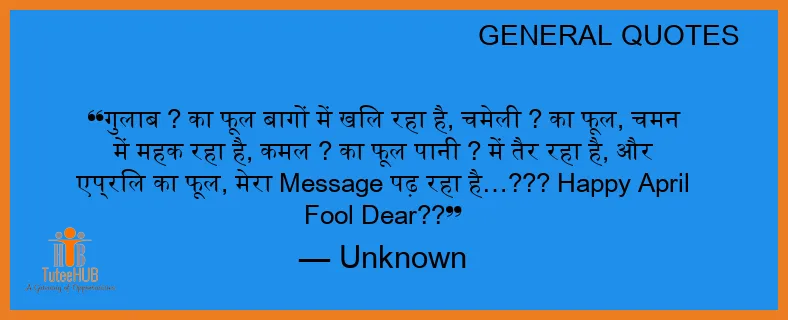 गुलाब ? का फूल बागों में खिल रहा है, चमेली ? का फूल, चमन में महक रहा है, कमल ? का फूल पानी ? में तैर रहा है, और एप्रिल का फूल, मेरा Message पढ़ रहा है…??? Happy April Fool Dear??