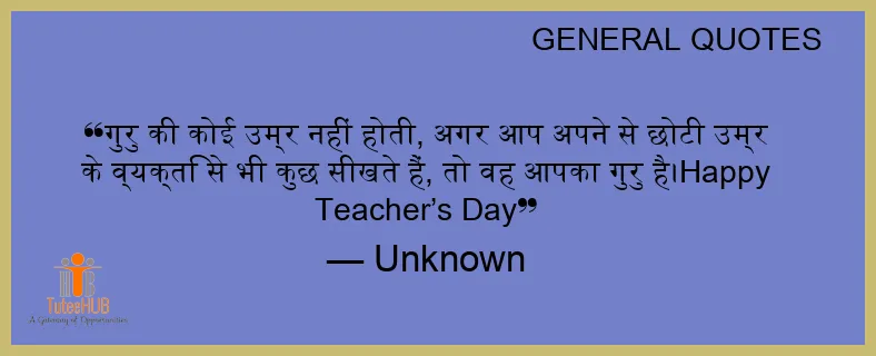 गुरु की कोई उम्र नहीं होती, अगर आप अपने से छोटी उम्र के व्यक्ति से भी कुछ सीखते हैं, तो वह आपका गुरु है।Happy TEACHER’s Day