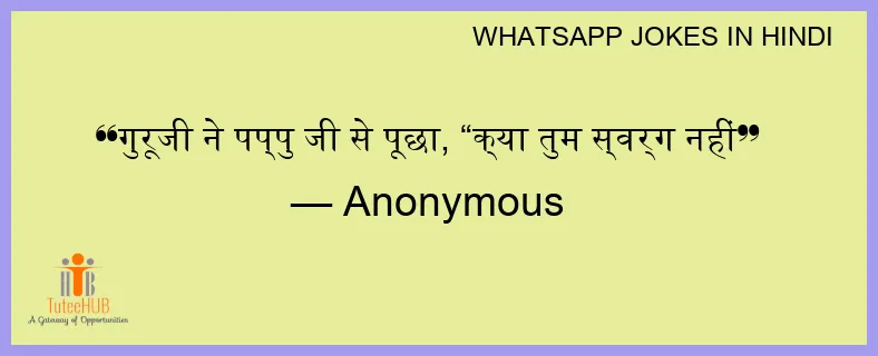 गुरूजी ने पप्पु जी से पूछा, “क्या तुम स्वर्ग नहीं