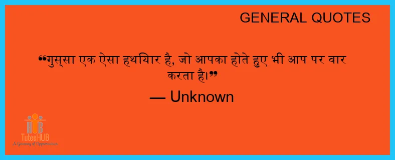 गुस्सा एक ऐसा हथियार है, जो आपका होते हुए भी आप पर वार करता है।