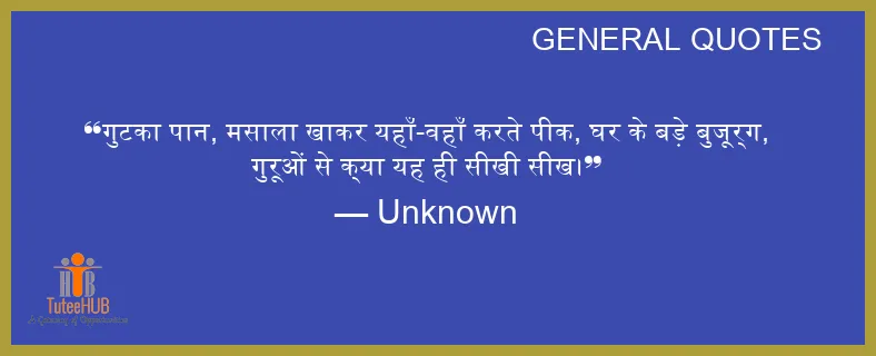 गुटका पान, मसाला खाकर यहाँ-वहाँ करते पीक, घर के बड़े बुजूर्ग, गुरूओं से क्या यह ही सीखी सीख।