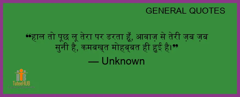 हाल तो पूछ लू तेरा पर डरता हूँ, आवाज़ से तेरी ज़ब ज़ब सुनी है, कमबख्त मोहब्बत ही हुई है।