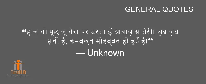 हाल तो पूछ लू तेरा पर डरता हूँ आवाज़ से तेरी। ज़ब ज़ब सुनी है, कमबख्त मोहब्बत ही हुई है।