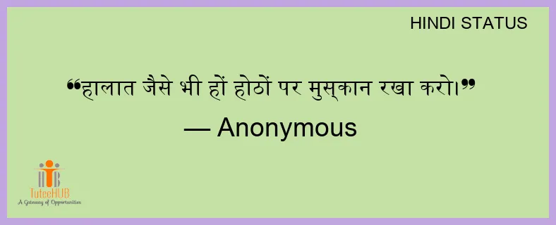 हालात जैसे भी हों होठों पर मुस्कान रखा करो।