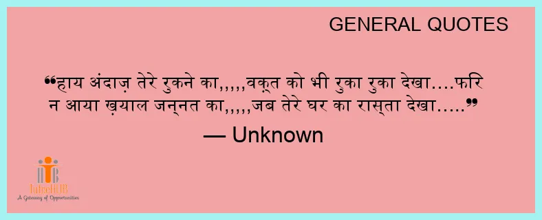हाय अंदाज़ तेरे रुकने का,,,,,वक़्त को भी रुका रुका देखा….फिर न आया ख़याल जन्नत का,,,,,जब तेरे घर का रास्ता देखा…..