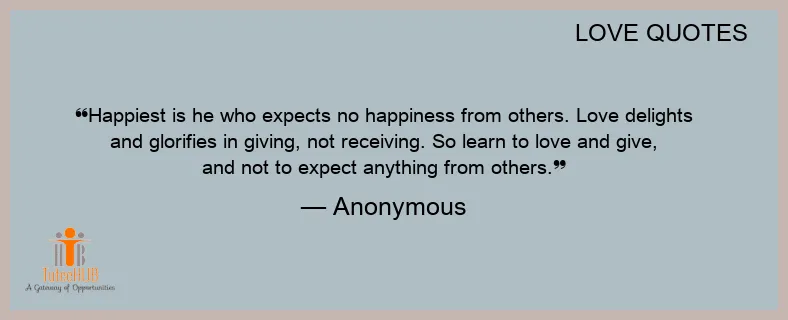 Happiest is he who expects no happiness from others. Love delights and glorifies in giving, not receiving. So learn to love and give, and not to expect anything from others.