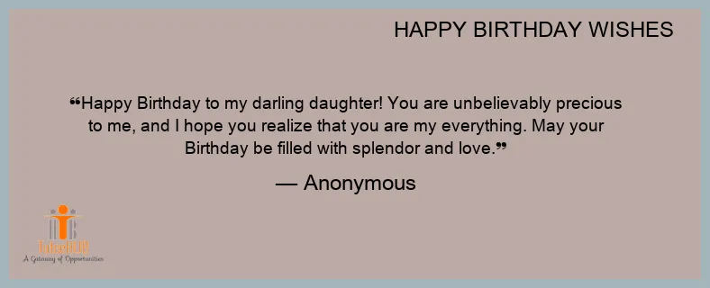 Happy Birthday to my darling daughter! You are unbelievably precious to me, and I hope you realize that you are my everything. May your Birthday be filled with splendor and love.