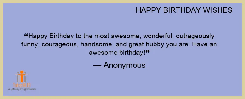 Happy Birthday to the most awesome, wonderful, outrageously funny, courageous, handsome, and great hubby you are. Have an awesome birthday!