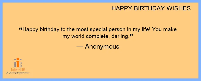 Happy birthday to the most special person in my life! You make my world complete, darling.