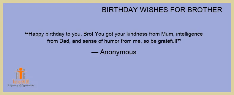 Happy birthday to you, Bro! You got your kindness from Mum, intelligence from Dad, and sense of humor from me, so be grateful!