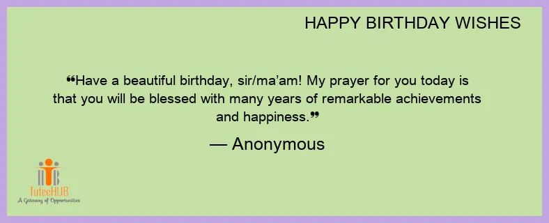 Have a beautiful birthday, sir/ma’am! My prayer for you today is that you will be blessed with many years of remarkable achievements and happiness.