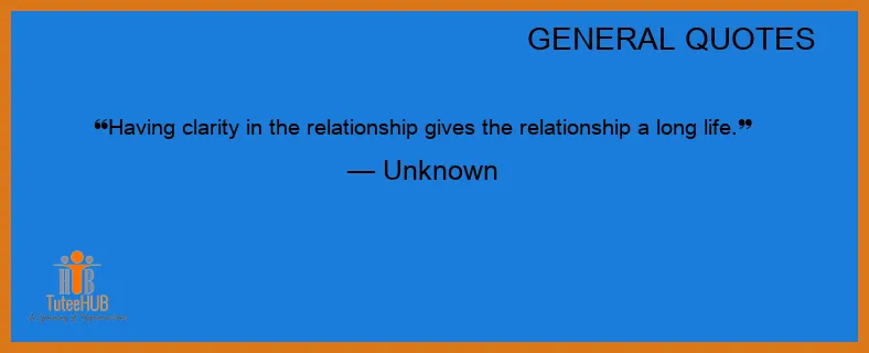Having CLARITY in the RELATIONSHIP GIVES the relationship a LONG LIFE.