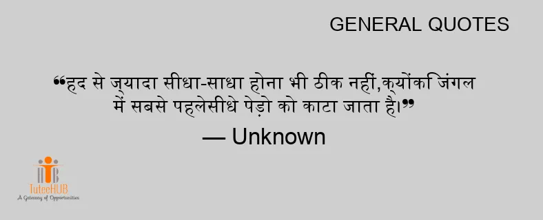 हद से ज्यादा सीधा-साधा होना भी ठीक नहीं,क्योंकि जंगल में सबसे पहलेसीधे पेड़ो को काटा जाता है।