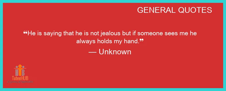 He is SAYING that he is not JEALOUS but if SOMEONE sees me he always holds my hand.