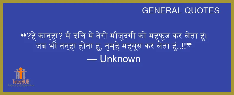 ?हे कान्हा? मै दिल मे तेरी मौजूदगी को महफ़ूज कर लेता हूं। जब भी तन्हा होता हू, तुम्हे महसूस कर लेता हूं..!!