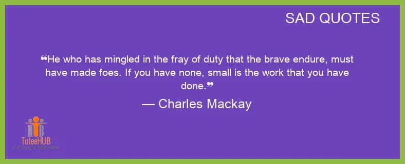 He who has mingled in the fray of duty that the BRAVE ENDURE, MUST have made foes. If you have none, small is the work that you have DONE.